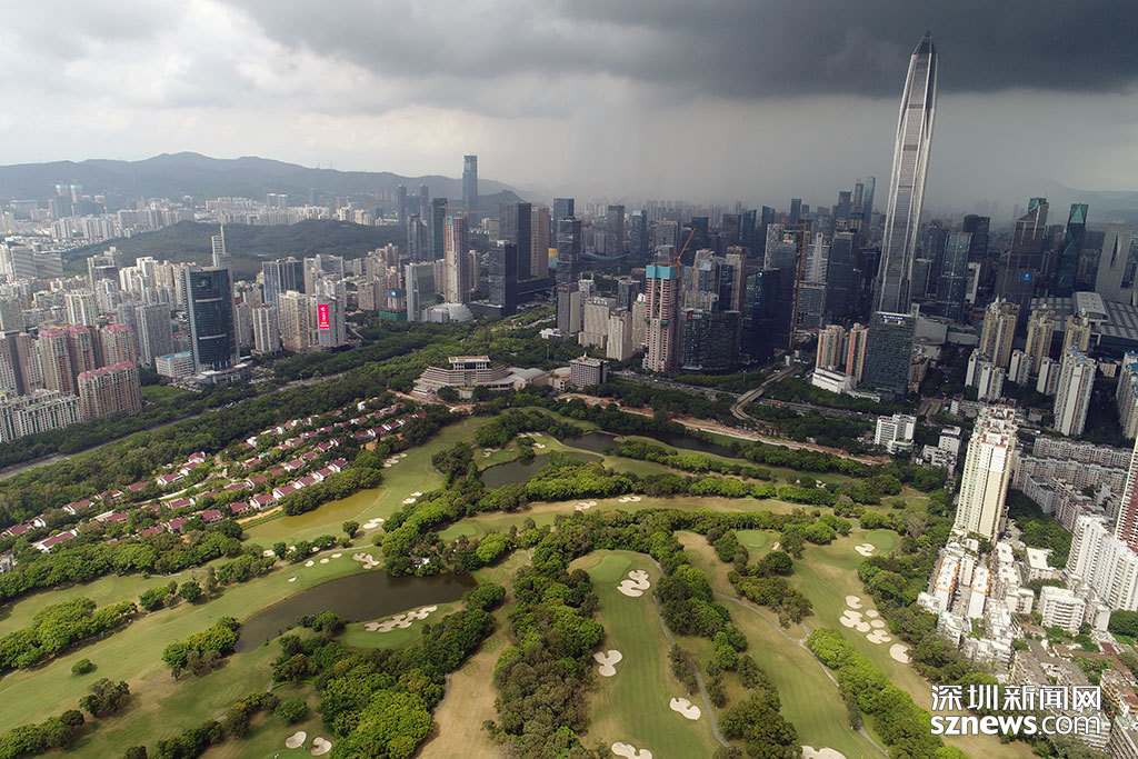 从深圳高尔夫俱乐部球场俯瞰,能够看到不远的平安大厦