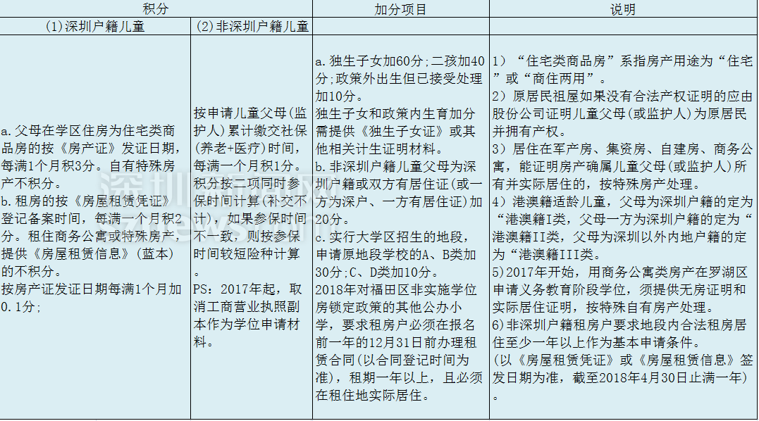 罗湖区采取“类别+积分,类别优先,后取积分”招生方法。