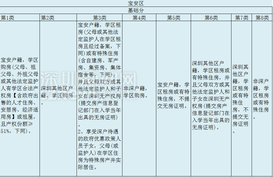 宝安公办学校采取“先类别后积分”录取制度,按照从第1类到第8类依次录取,同一类学生则按照积分从高到低录取,公办学校招生计划录满为止。