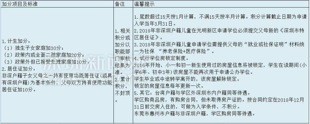 入学必看!2018深圳10区小一初一积分计算标准在此