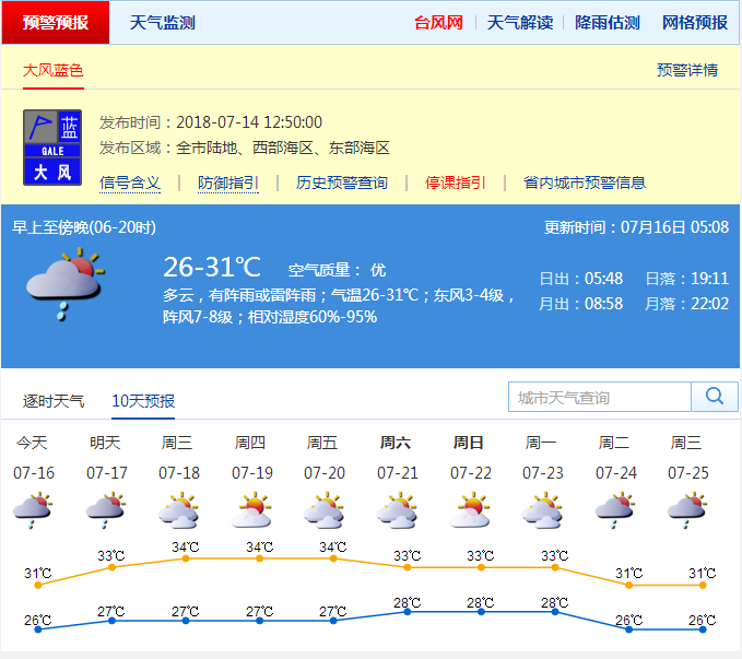 据深圳市气象台综合各种资料预测,今年7月中旬至8月上旬深圳天气将呈“有台风影响,阳光阵雨相间,多高温酷热天气”的特点。此外,7月下旬至8月上旬主要有3次明显降雨过程,分别出现在7月21日至22日、7月30日至31日和8月9日至10日。