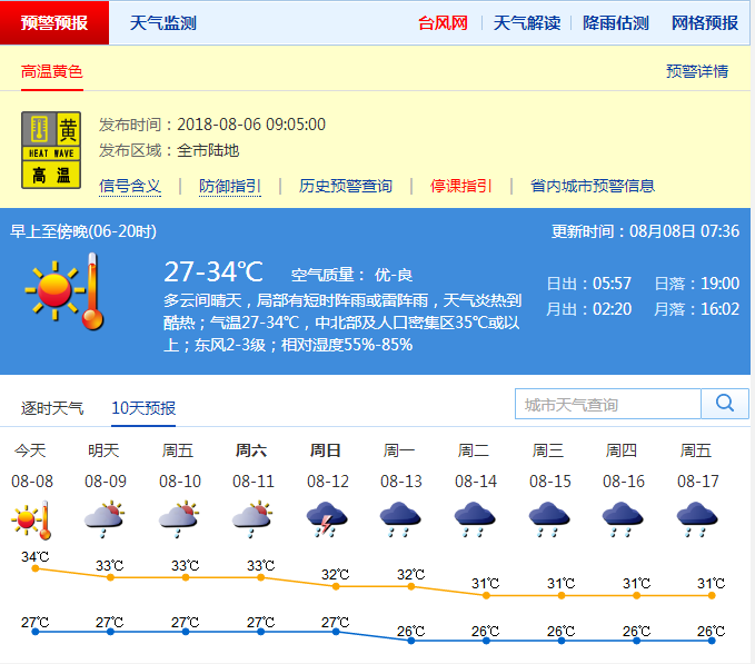 市气象局发布未来10天天气预报(数据更新于8月8日07时36分)