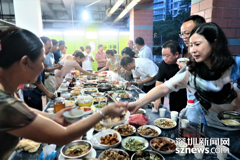 深圳新闻网讯 (记者 刘婷 林毓瑾 通讯员 张晋)住在钢筋水泥森林,一墙之隔不往来,擦肩而过不搭话,这或许是城市邻里关系的“痛点”,但深圳水木华庭的业主在8月11日举办了别开生面的“百家宴”,却吃出浓浓的邻里情,小编隔着屏幕都闻到了“爱的味道”…… 为庆祝水木华庭新一届业委会的诞生,水木华庭业主微信群的群主杨莉建议11日在4栋B单元架空层,开个“百家宴”。这个主意一出来,水木华庭的业主们纷纷响应,业委会成员和业主大会筹备组成员也都纷纷表示:届时将争取贡献一两个拿手好菜! 于是乎,业主们分头行动,筹备工作有条不紊地进行。8月11日晚,水木华庭入伙15年来的首次“百家宴”如期举行。