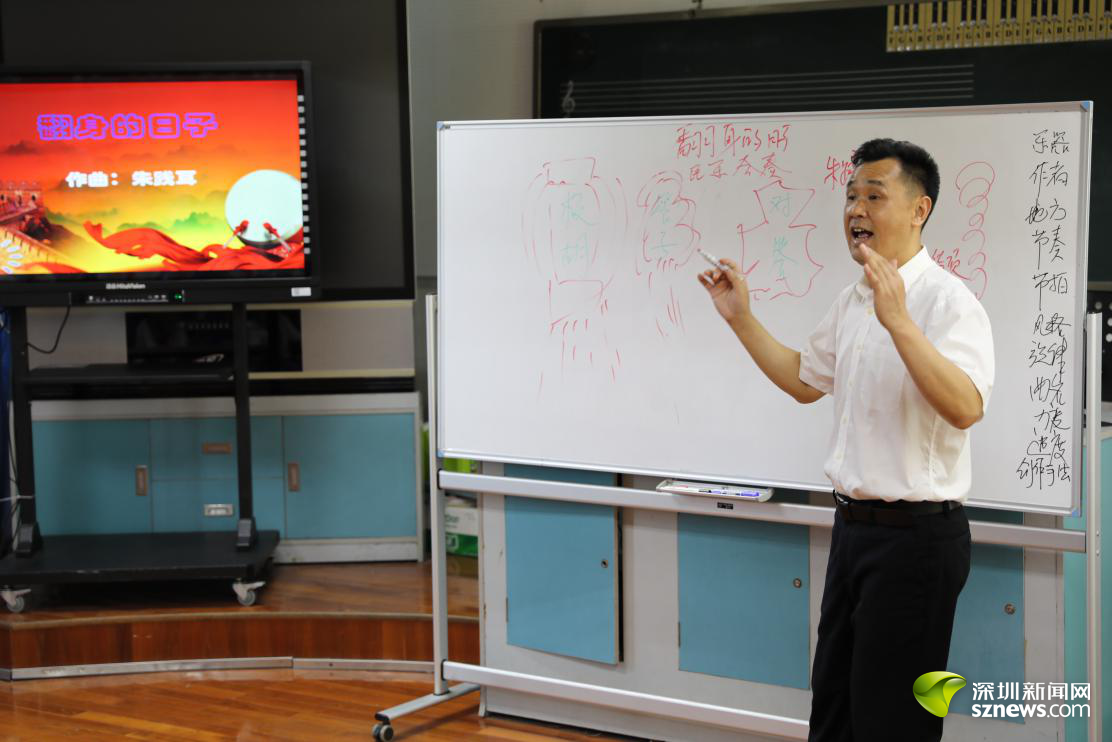 深圳新闻网讯 (记者 曹园芳)“1994年大学毕业进入湖南省衡阳艺术学校,从事专业舞蹈学科教学,带着一群追梦少年心随舞动,这是我教育之梦的开始。”他,从事音乐教育工作24年以来,在教学中坚持“以美育人、以文化人”,以提高学生艺术素养与人文素养为己任,他就是小学高级教师、福田区皇岗小学教务主任戴智。