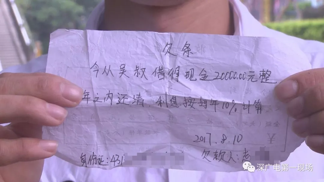 男子为了亲叔叔一张借条跑来深圳 债主却说没借过钱