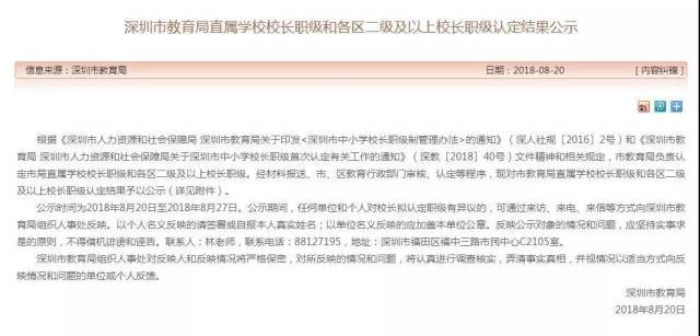 备受关注的深圳校长职级制改革有了新进展。8月20日,深圳市教育局官网对直属学校校长职级和各区二级及以上校长职级认定结果进行公示,共有371人。据了解,这是该项改革启动后首次集中公示。各区三级及以下正、副校长的职级,由区评定委员会负责评定,目前也都在各区教育局官网公示中。根据统计,此次深圳全市评定职级的正、副校长共1297人。