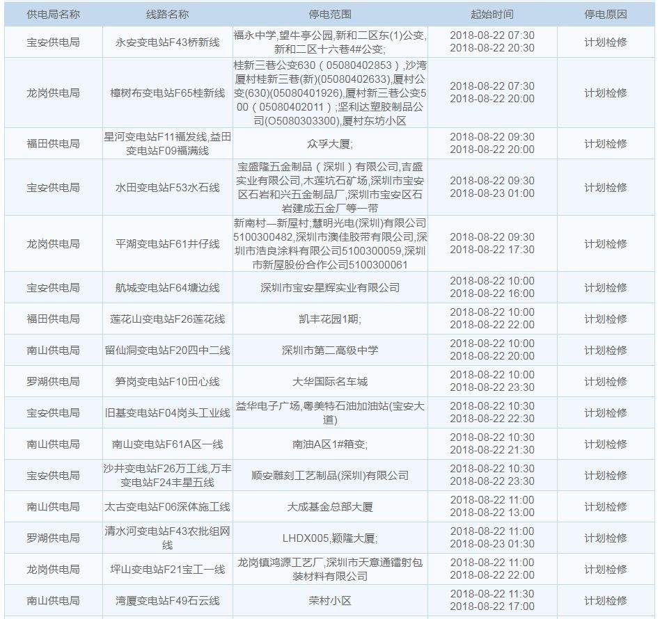 8月22日停电区域