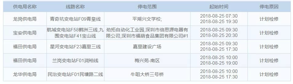 8月25日停电区域