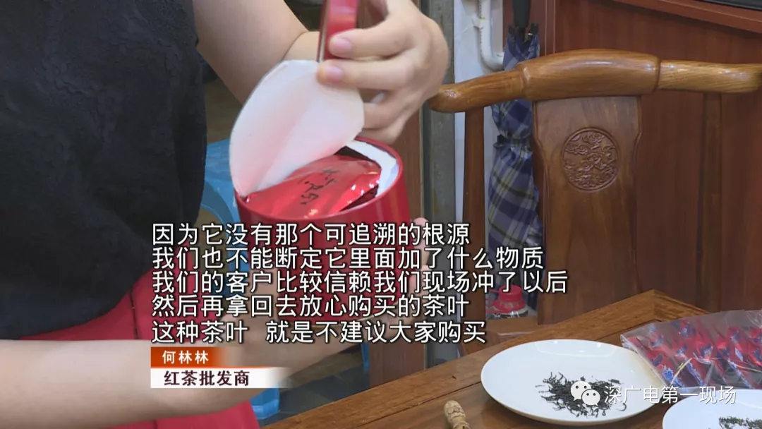 今天,记者也来到位于景田片区的中国茶宫茶叶批发市场,一家长期经营红茶的店家介绍,他们店就卖有正山小种和白茶,记者也拿出了刘女士在停车场购买的茶,和店家销售的正山小种做了对比。店家介绍,停车场售卖的正山小种茶,一小包为标准的5克包装,分量倒没有问题,但茶叶外观和口感上就有说头了。