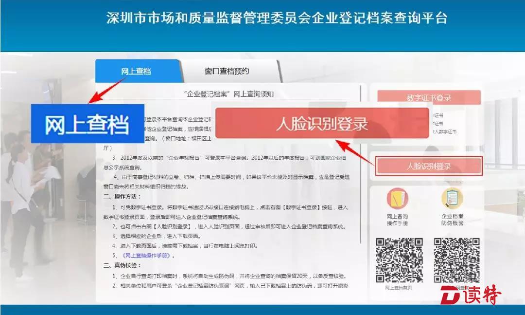 深圳新闻网讯 查询企业档案不用到窗口排队了,登录市市场和质量监管委官网进入“企业档案登记”栏目就可以用人脸识别登录查询。