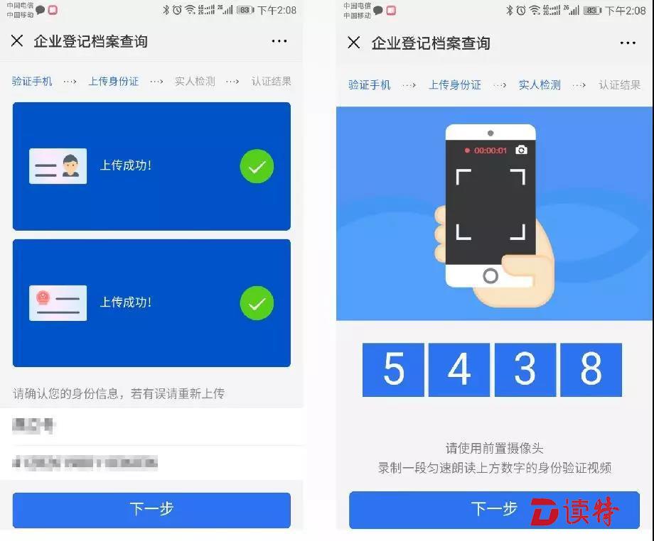 视频验证成功后,点击“下一步”(若验证不成功,则需退回重新操作);