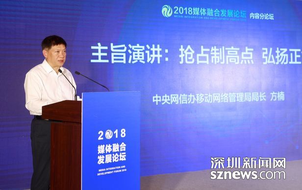 中央网信办移动网络管理局局长方楠发表主旨演讲时指出,以网络视频这种当前最为流行的可视化传播形态为例,用户规模已达6亿,占全部网民的74.1%,每天平均有超过4亿网民刷网络短视频50分钟以上,已深刻影响着人们的思想和生活。但主流媒体总体在这方面起步较晚,发力不够,供给不足,还需加倍努力,加大投入,为广大网民提供更多更好权威、优质、健康的网络文化内容。