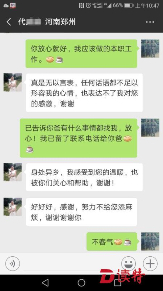 早上7时50分许,口岸派出所巡逻民警陈谭海终于在火车站广场外的小店中找到了老人,随即将其接到派出所,随后由口岸派出所民警晏红卫将其送到辖区滨河中学的紧急避难所予以妥善安置,目前老人的身体健康状况良好,并与其女儿代女士取得了联系。