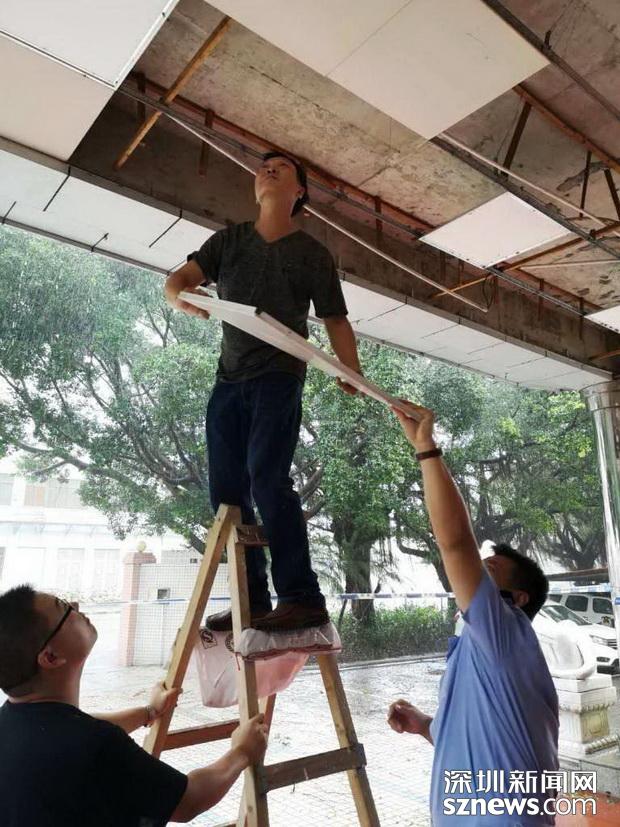 边检技术民警在抢修被强台风破坏的现场设施
