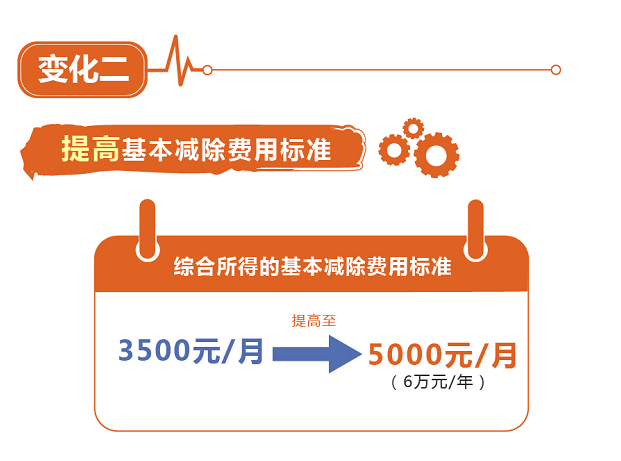 此次个税改革再次提高基本减除费用标准和优化税率结构。从今年10月1日起,基本减除费用标准,也就是俗称的起征点,将从原来每人每月3500元提高至5000元(每人每年6万元)。