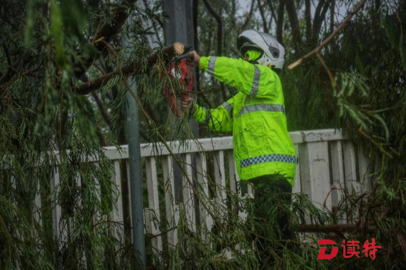 面对强大的台风,艾力军感到焦急又无奈。“真的是路两旁的树一棵棵的在我眼前倒下,疏通不完的排水口,清理不完的倒树。”艾力军对记者说。即便如此,他还是带领队员不断的在风雨中努力尝试不让路被积水、倒树堵死,一次次下车排除险情。