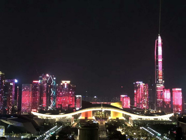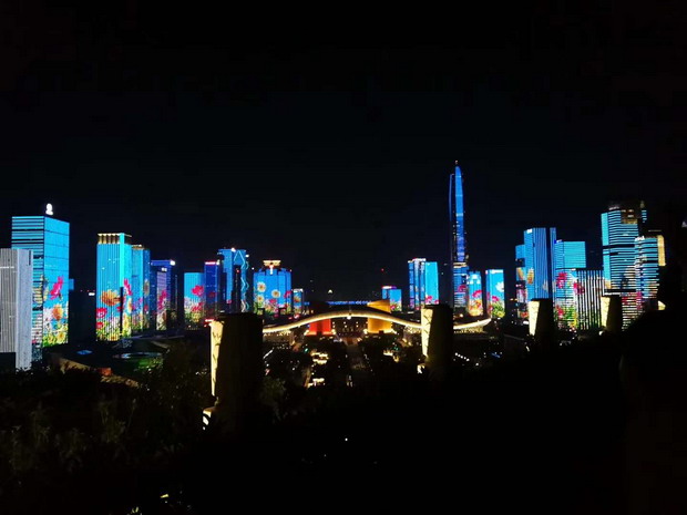 这台别开生面的晚会,主舞台设在市民中心广场,舞台后方呈现着深圳市精心打造的福田中心区43座楼宇灯光秀,五彩斑斓、绮丽多姿的深圳城市新夜景,与晚会现场舞台融为一体,为市民和广大观众呈现出一个迷人的“深圳之夜”。