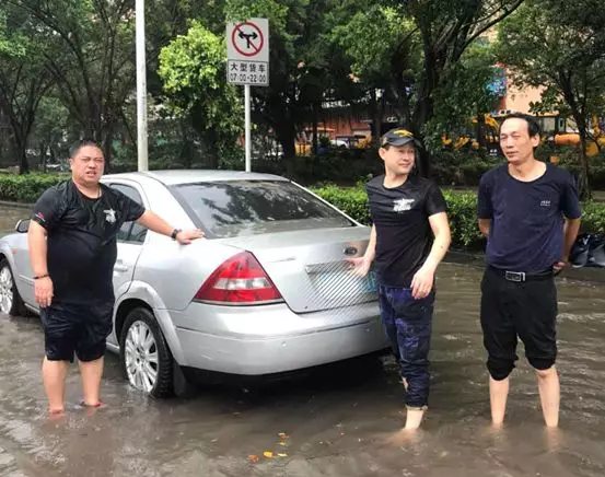 ▲ 16日,深圳市内出现了大量积水,马友们帮助涉水车主拖车 / 受访者供图