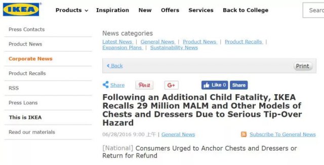 根据美国消费者产品安全委员会的数据,宜家当时在全球召回了2300万件该系列产品 -其中包括近300万件在美国销售的产品和110万件在加拿大销售的产品。