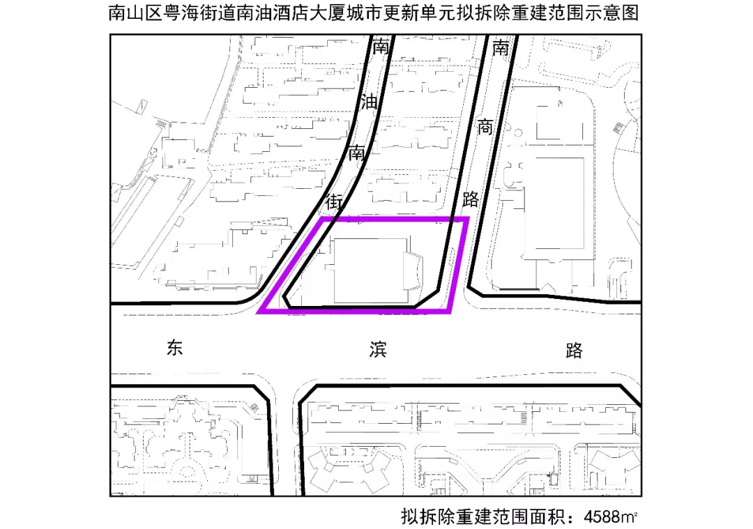 9月18日,南山区城市更新局在官网上发布了“关于《2018年深圳市南山区城市更新单元计划第五批计划》的公告”,南油酒店位列其中。公告明确指出,南油酒店拟更新方向为商业用地,拟拆除范围用地面积共4588平方米,拟拆除重建用地范围内应落实不少于1376平方米用地用于建设城市基础设施、公共服务设施或者城市公共利益项目,拟贡献率约为30%。
