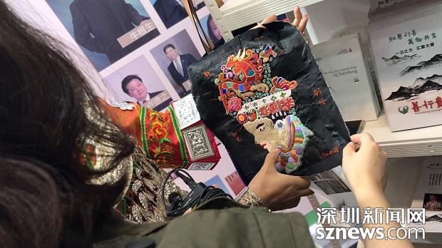 阳女士向记者展示非遗的绣品