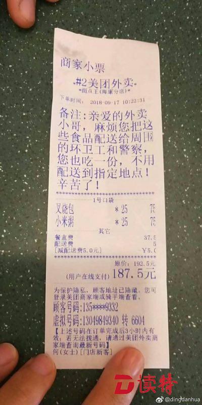 还有为这些前线工人送爱心外卖订单的“何女士”