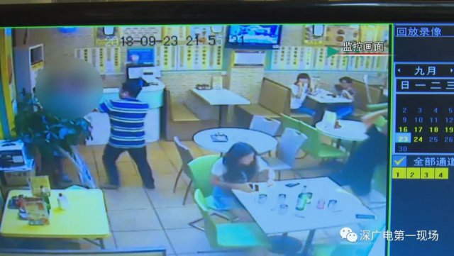 在9点50分左右,罗先生带着女儿进入餐厅后,这名黑色短袖男子仍然没有停止抽烟,在双方发生口角后,这名黑色短袖男子更是直接动手,不但抄起身边的物品砸向罗先生,还试图冲上前殴打罗先生。