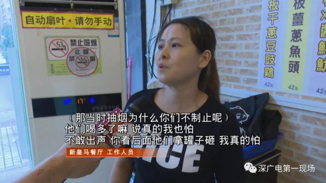 从监控视频可以看到,一名身穿黑色短袖的男子,自从进入这家新皇马茶餐厅后,就开始一边跟身边的朋友聊天,一边抽烟。