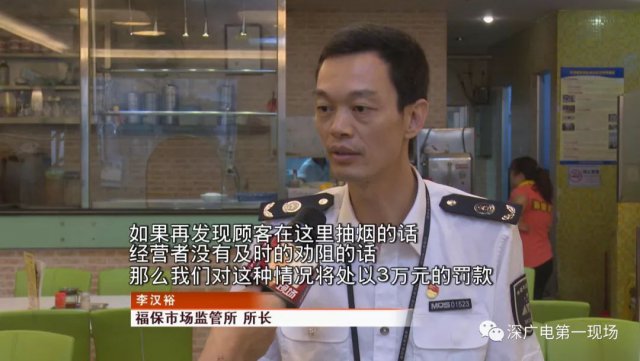 今天上午,记者将这一情况反馈给了辖区的福保市场监管所,上午10点半,执法人员一行来到了这家新皇马茶餐厅,但现场并未发现有市民在室内抽烟,而且这家餐厅也确实按规定张贴了禁烟标志。
