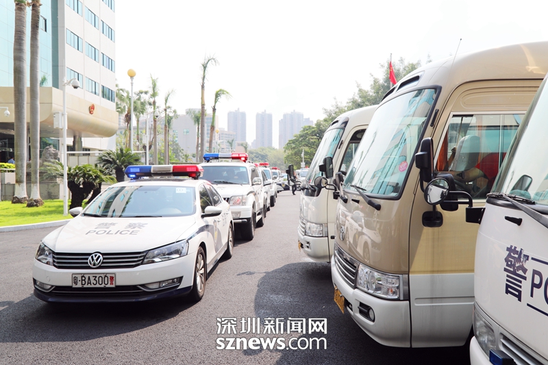 警车列队,准备前往金域蓝湾完成执行行动(福田法院供图)