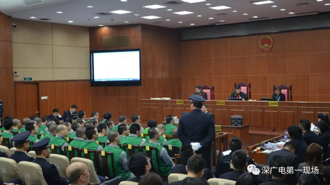 本案庭审时间共持续4天,其中仅讯问、举证即持续2天时间。公诉机关提起的起诉书达50页,随案移送案卷共计48卷,撰写审查报告共计185页11万余字,并制作多份表格数据。法院一审判决判决书达119页。在庭审现场共有50余名辩护律师出庭辩护,多名被告人家属到场旁听。因为人数众多,深圳市福田区人民法院将该院最大的第一审判庭座椅进行了拆除改造,才达到开庭条件。