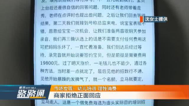 沈女士说,通过海选,她的儿子是成功的被选上了,随后这培训机构就开始让她交报名费了。报名费一共是花了16800元。可是沈女士在交完钱后,却很快后悔了,因为她觉得消费者对这家公司的评价,并没有他们宣传得那么好。