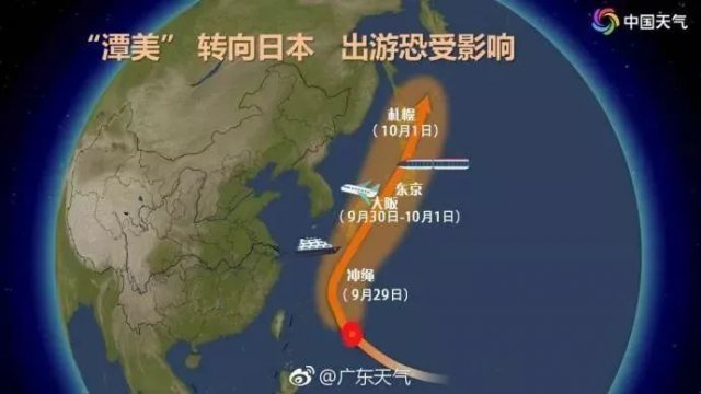 另据 @广州天气,"潭美"28-29日最接近台湾,随后掉头往东北方向移动,国庆期间前往台湾的朋友不用担心。