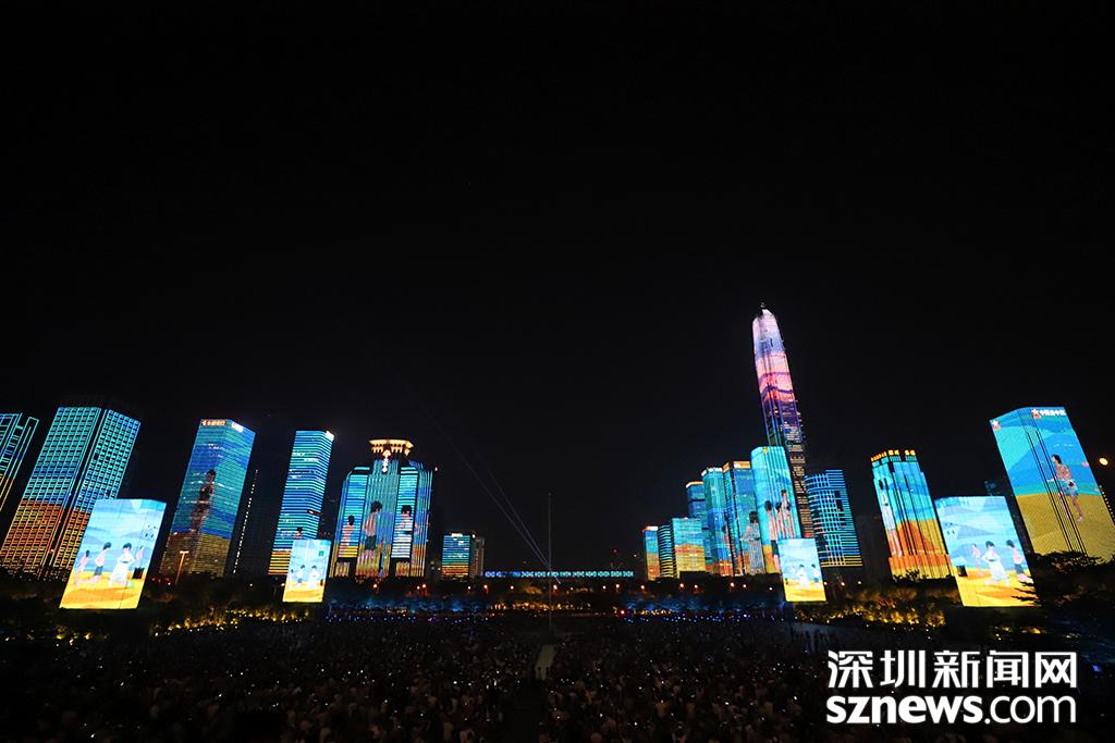 深圳新闻网9月29日讯(记者 钟鸿冰 杨浩瀚 刘庆康 涂胜 实习生 张林羽 通讯员 崔嵩)为庆祝改革开放40周年,9月28日,“辉煌新时代”深圳中心区灯光表演正式首秀。“辉煌新时代”灯光表演包括山海之城、改革之窗、创新之都、和谐之境四大篇章。在市民中心周围,以平安大厦为地标,通过中国古典风及波普艺术等不同表现手法和智能管控技术,实现43栋楼宇灯光联动,点亮流光溢彩的中心区璀璨夜景。