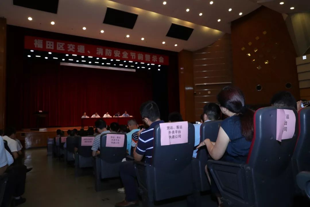 在国庆节即将到来之际,为加强交通事故和火灾的警示教育,切实做好节日期间的安保工作,福田区于9月29日上午,在福田会堂召开交通暨消防安全节前警示会,通过压实营运企业和物业等涉及企业的安全生产主体责任,降低交通事故和火灾的发生,维护辖区的平安、稳定、有序。
