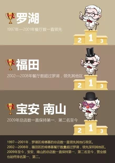 深入了解肯德基的开店数据,小编发现,肯德基居然也是一路向西发展。可谓罗湖、福田、南山宝安,各领风骚数年。