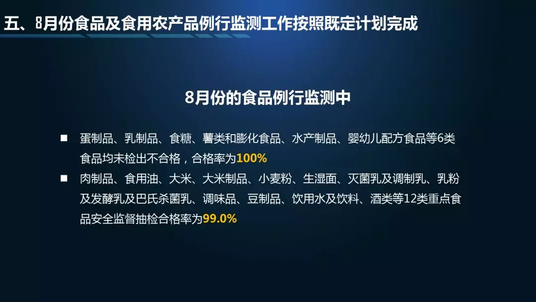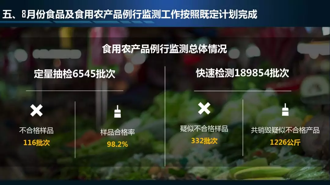 8月份食品及食用农产品例行监测工作按照既定计划完成
