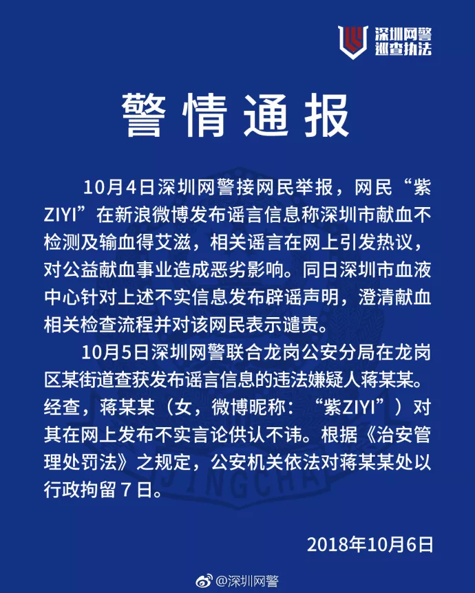 深圳是国内最早开展无偿献血的城市,公益献血事业救助大量病患,深圳网警在此号召大家积极参与公益献血。造谣违法,献血光荣。