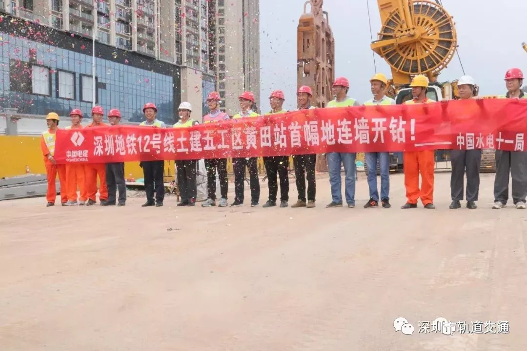 伴随着旋挖钻机的轰鸣声,黄田站桩板墙首根灌注桩成功开钻,打响了深圳地铁12号线土建五工区工程主体结构施工大战的第一枪,标志着该工程完成前期工程,正式拉开了主体工程建设的帷幕。