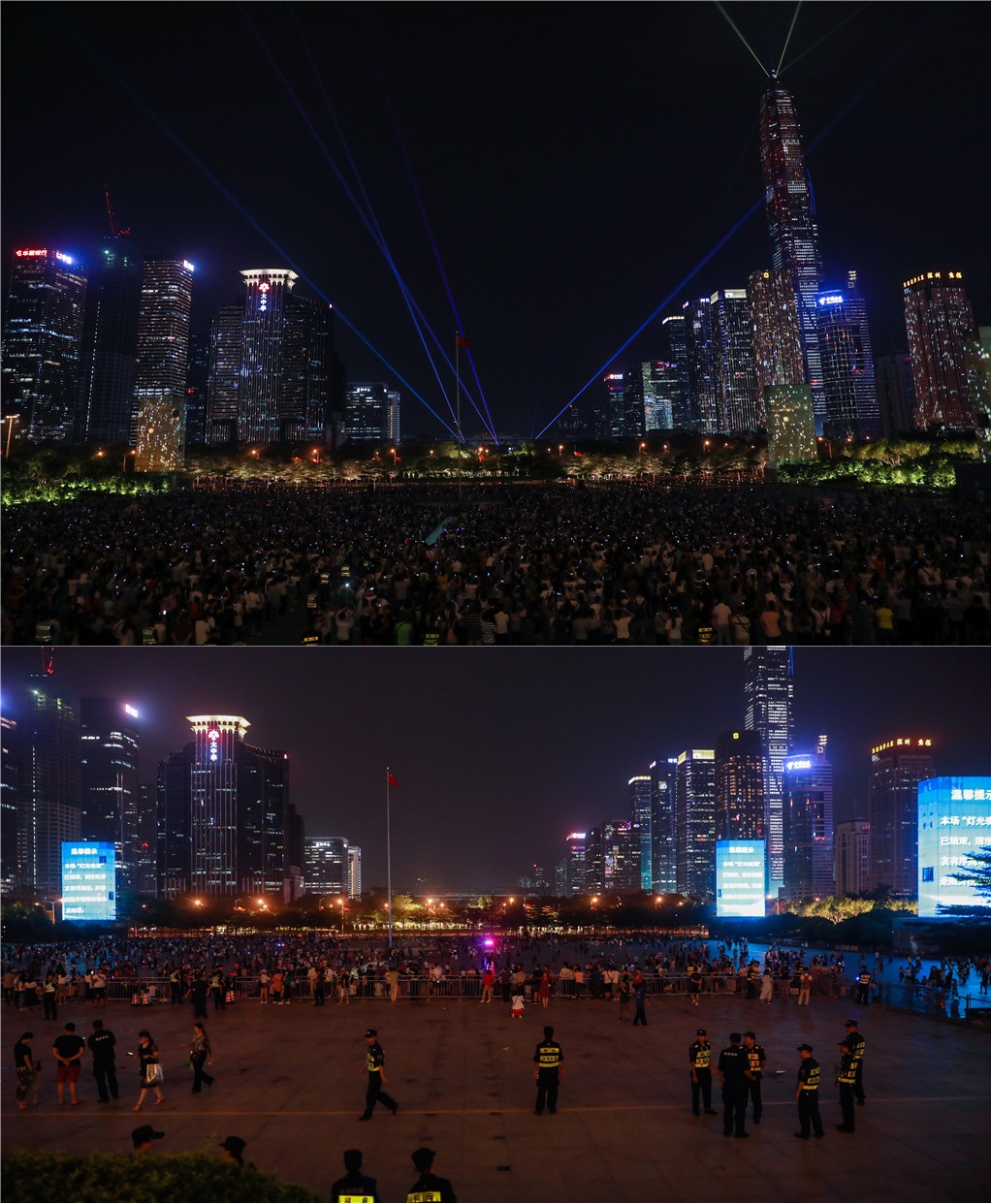 深圳新闻网10月9日讯(记者 陈婕 钟鸿冰 杨浩瀚)自9月28日深圳中心区灯光表演正式首秀以来,截止国庆假期结束时,观演人流量总计达到137.3万人次。每天这么多人扎堆看灯,是否会给周边的环境卫生带来很大压力?人潮散尽,市民所丢弃的垃圾都去哪里了?10月8日晚上,深圳新闻网记者来到市民中心广场和莲花山观景台现场了解情况。