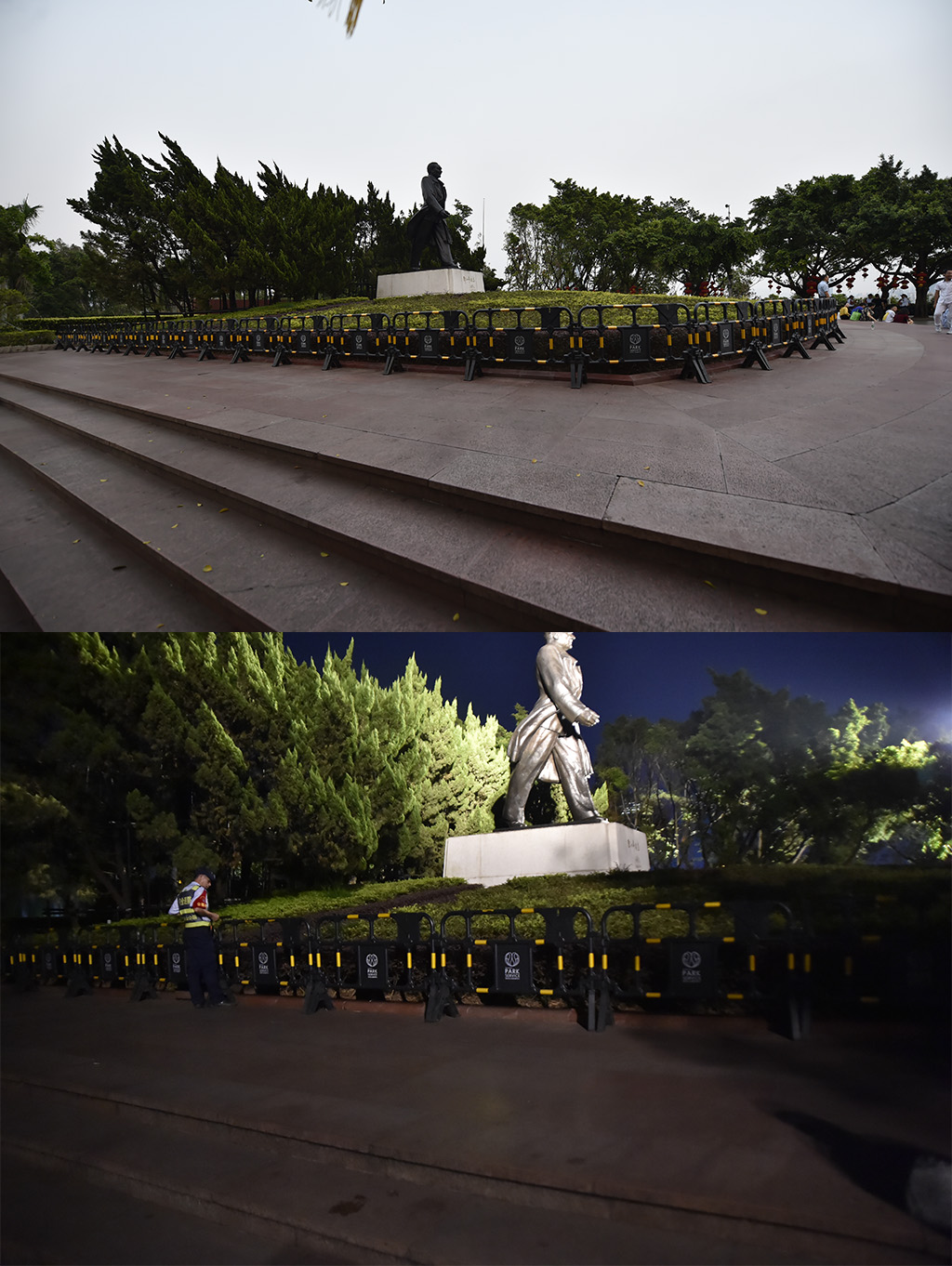 莲花山观景台,面对邓小平雕塑左侧没有垃圾残留,落叶也被清扫干净