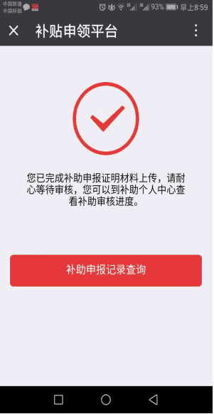 第五步:完成补助预登记后,点击【补助申报记录查询】即可查询个人补助申请进度了。