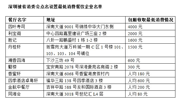 原标题:餐馆仍设最低消费深圳10家餐饮企业被省消委会点名