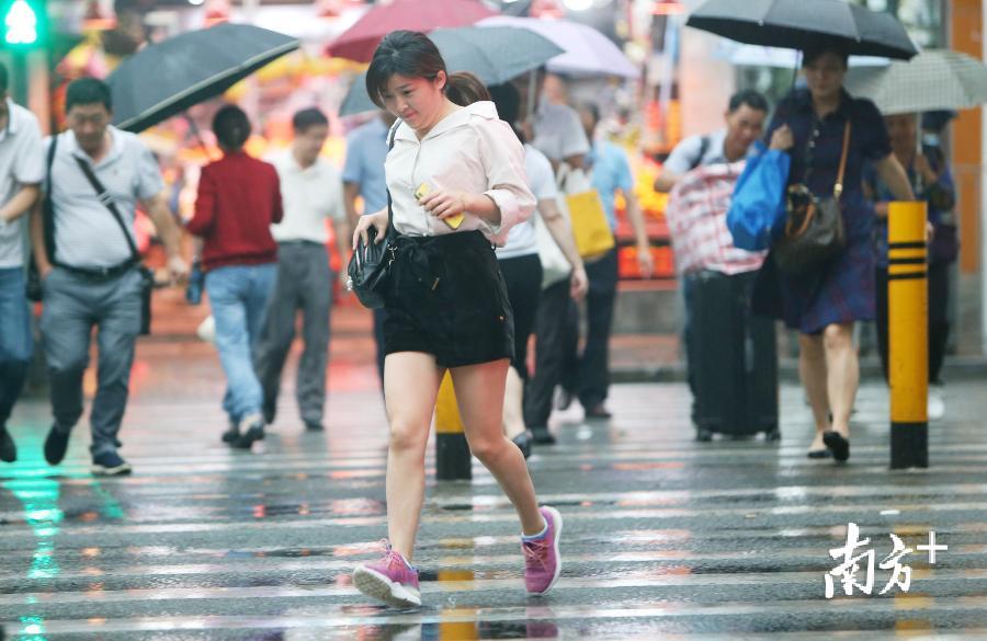 10月10日,受冷空气影响,深圳降温又降雨。在罗湖区街头,傍晚时分凉意扑面而来,许多行人添上衣物,在冷风细雨中匆匆前行。南方日报记者朱洪波摄影报道