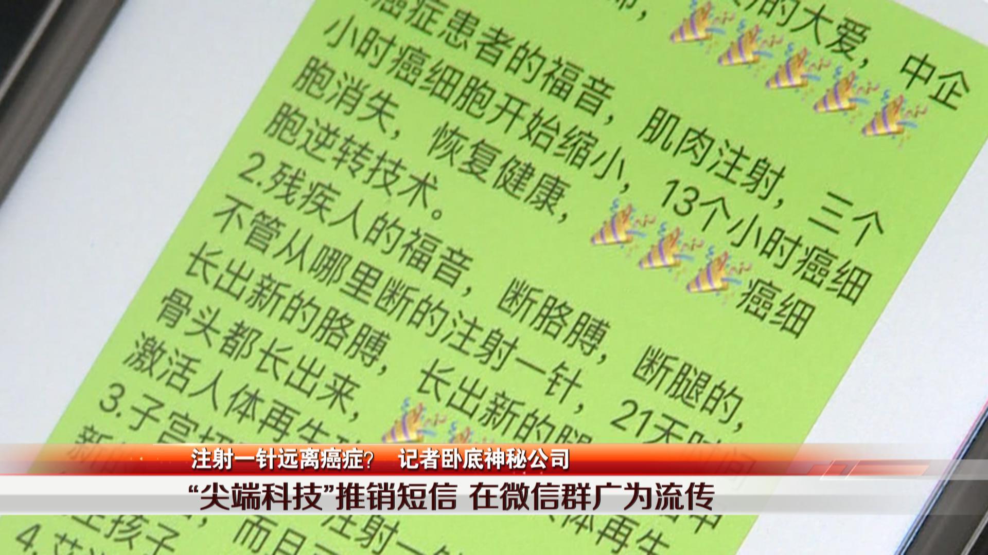 “先机,先机,改变人类命运的生物科技”,这条号称改变患者命运的短信在一些微信群里流转,短信内容号称只要打一针,就能治愈身体上所有的疾病,其中包括癌症、肢体再生、子宫再生、糖尿病、青春逆转等,还呼吁将短信转给有需要的患者,并表示向全国招募合伙人。