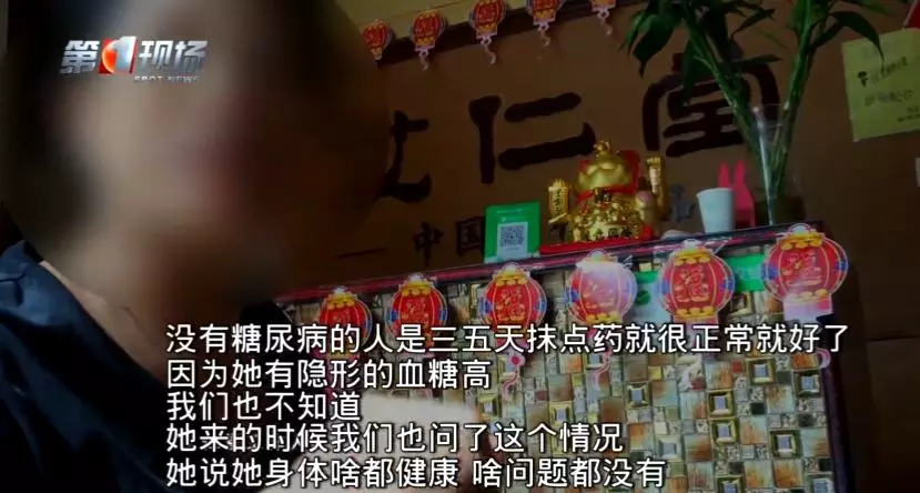 随后,记者也陪同吕女士来到了盐田区的这家艾仁堂养生馆,吕女士烫伤事发时在店的工作人员承认了确有其事,但辩称在艾灸过程中烫伤是时常发生的,另外,吕女士烫伤的如此严重,是因为她患有糖尿病。