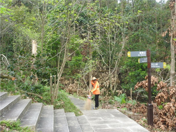 环卫工人在清理杂乱树木 深圳论坛网友“szwtyh”摄