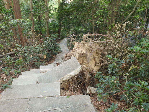 仙湖植物园内被“山竹”吹倒的电线杆 图片来自深圳论坛网友“szwtyh”摄