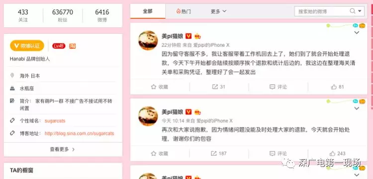 这一次疯抢之后,很多粉丝在收到墨镜以后,发现了与正品相差太多,怀疑买到了假冒产品,于是在评论中讨要说法,可是“猫娘”直接将人拉黑,这个做法彻底激怒了粉丝。