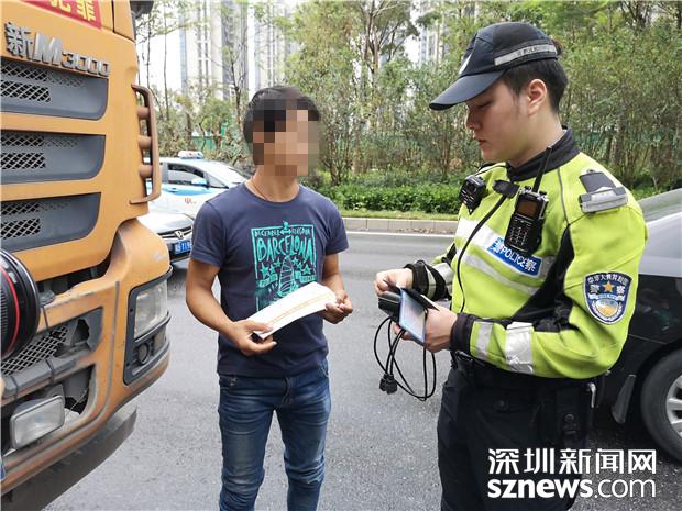深圳交警对泥罐车司机开出罚单:罚款100元扣2分